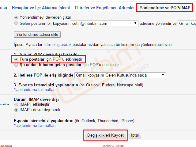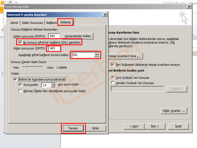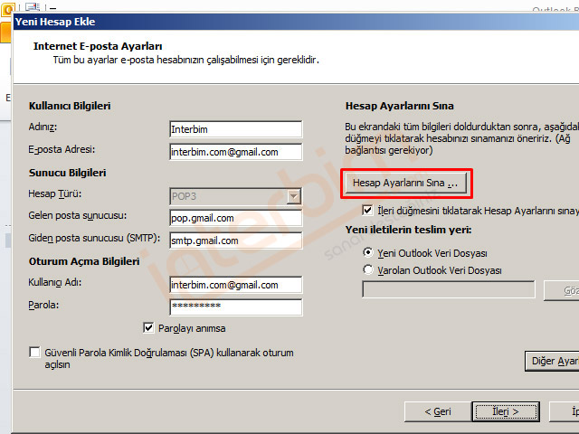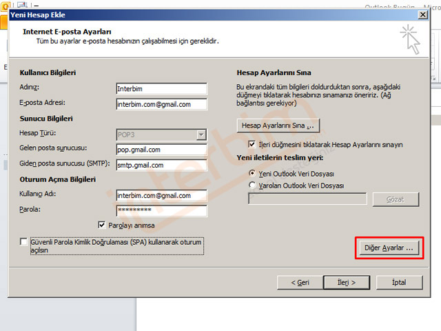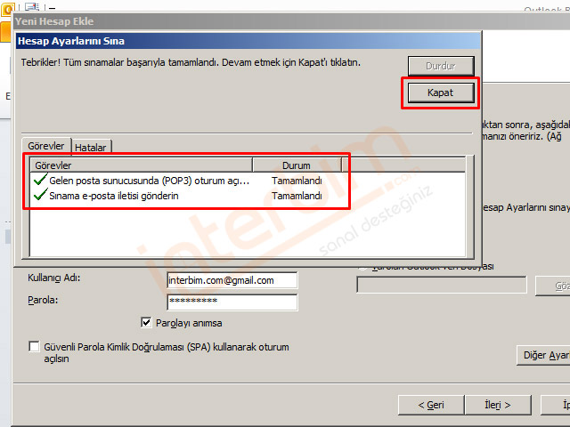 Office Outlook 2010'a Gmail E-posta Pop3 Kurulumu