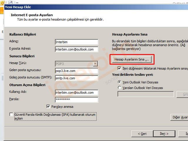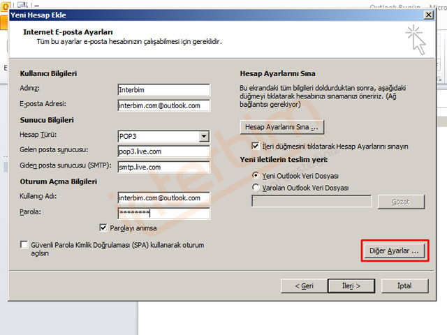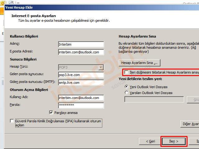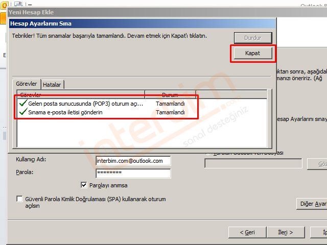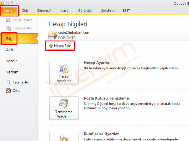 Office Outlook 2010'a Outlook E-posta Pop3 Kurulumu