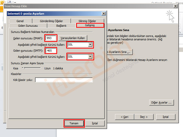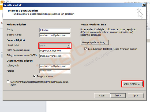 Office Outlook 2010'a Yahoo E-posta Hesabı Imap Mail Kurulumu