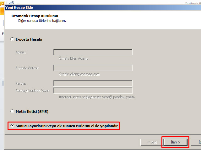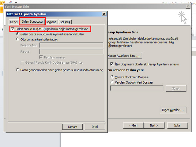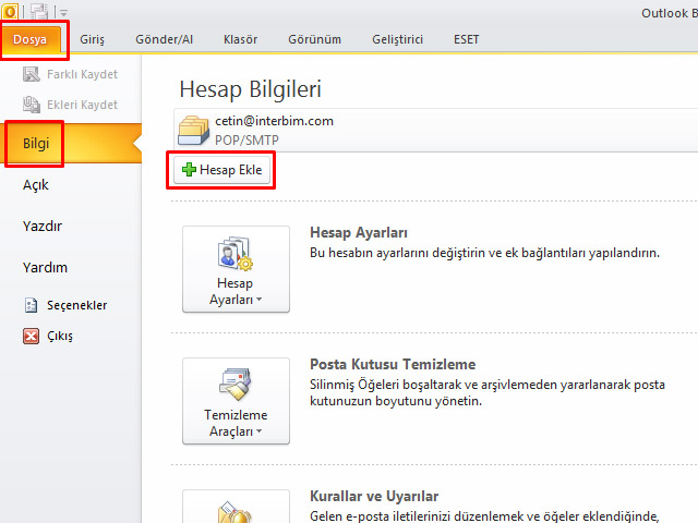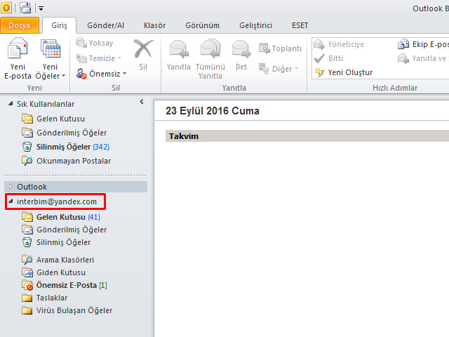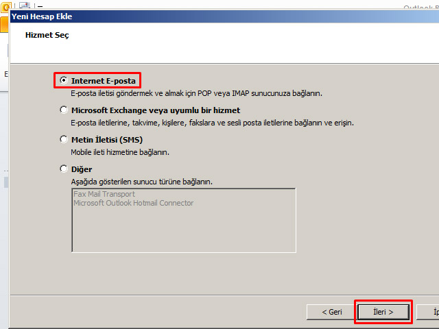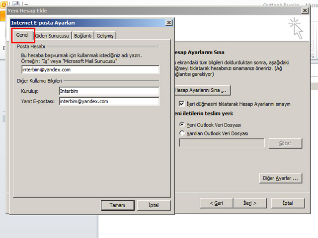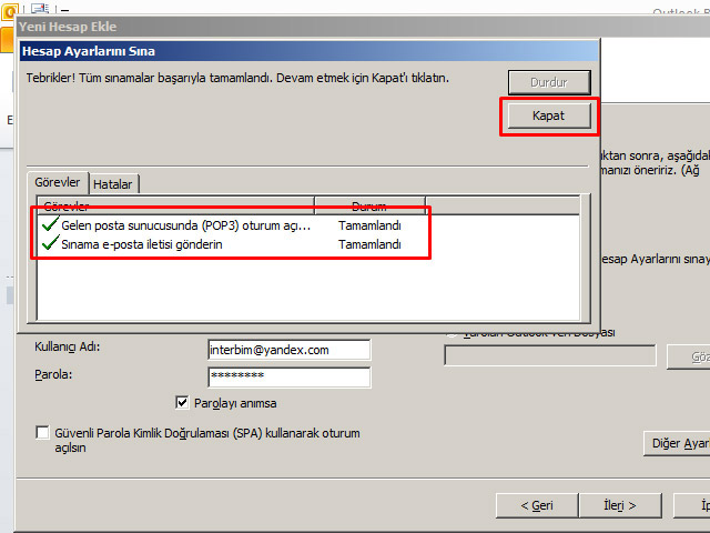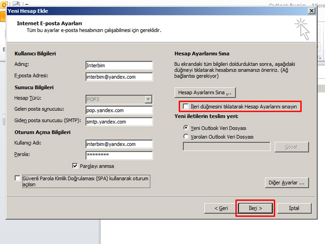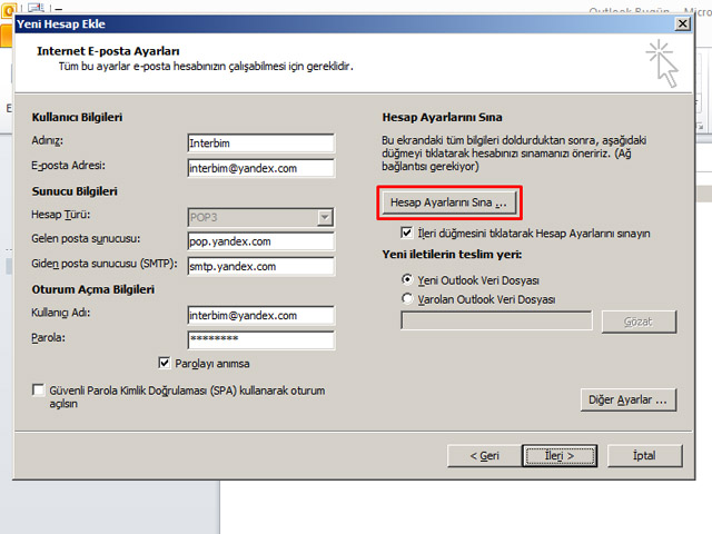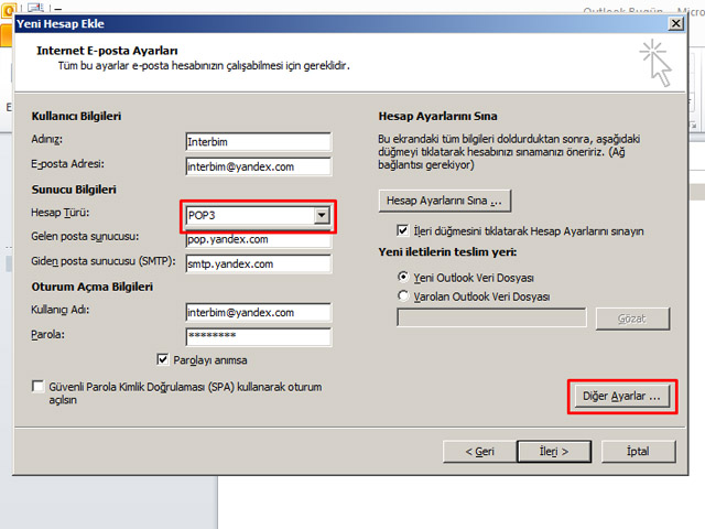 Office Outlook 2010'a Yandex E-posta Pop3 Kurulumu