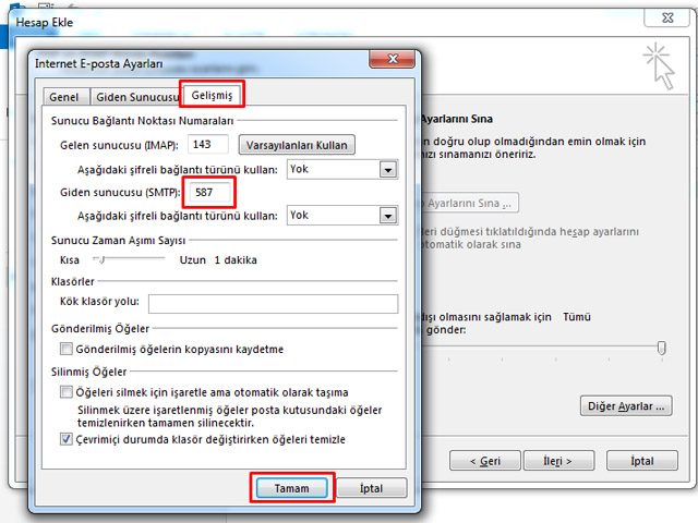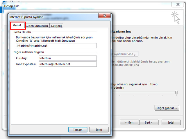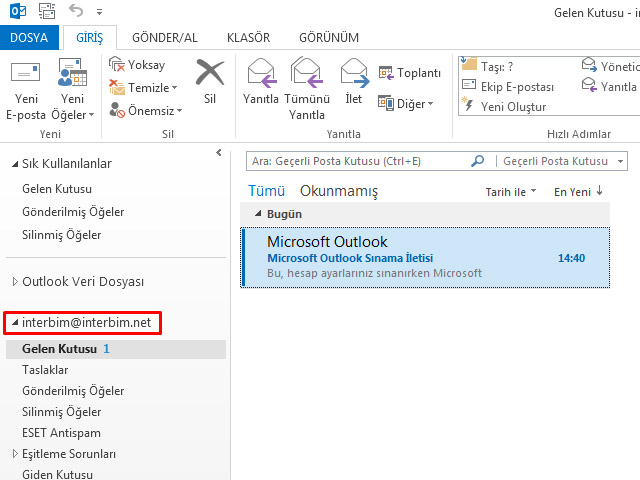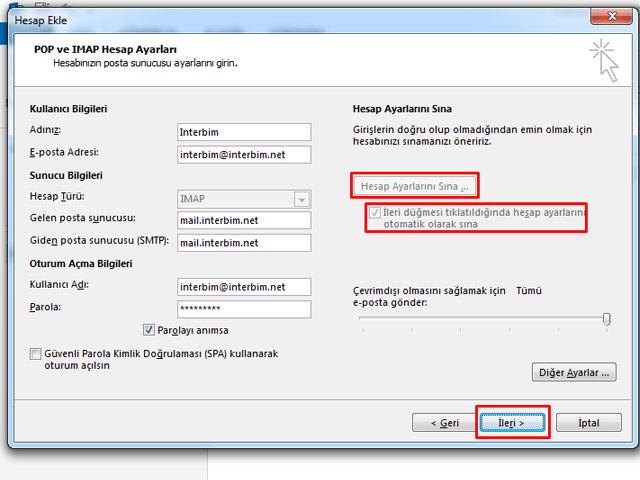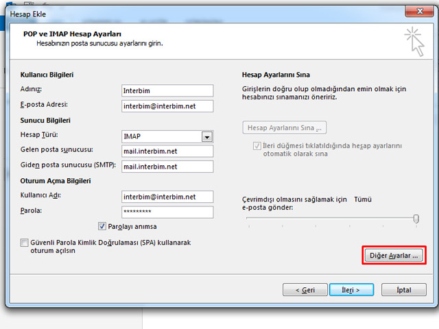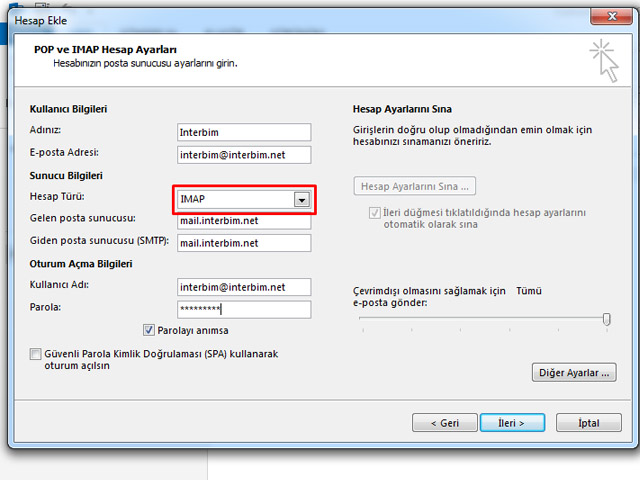 Office Outlook 2013'e Interbim E-posta Imap Kurulumu