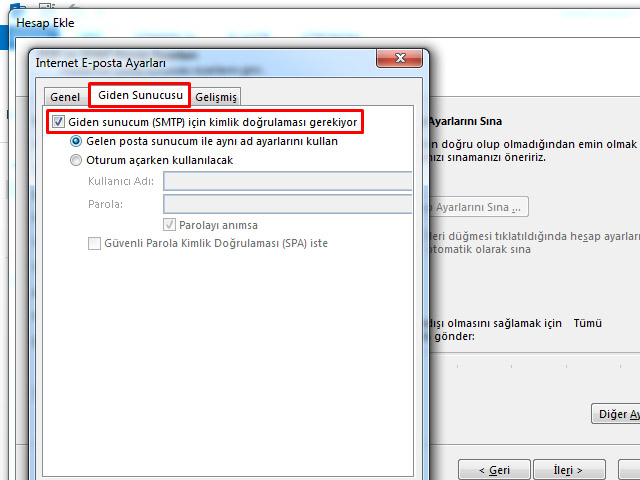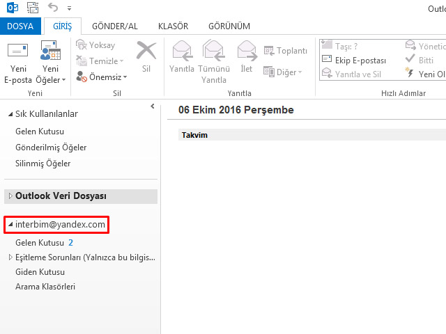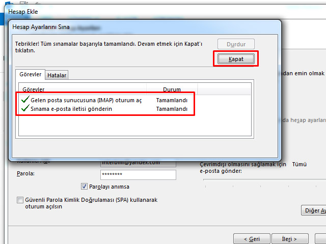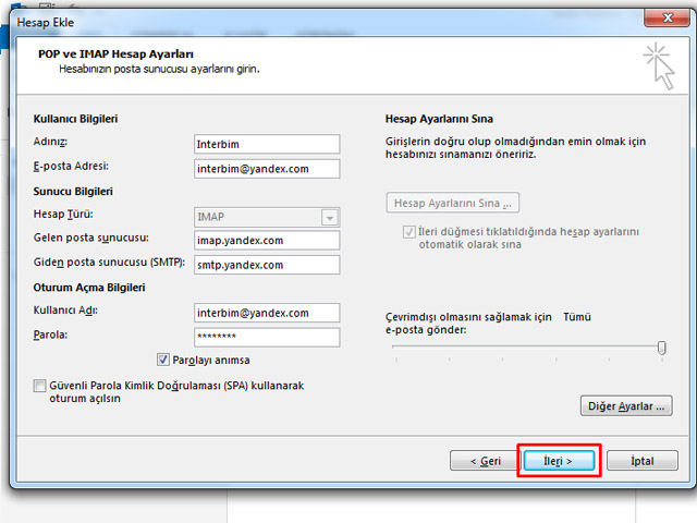 Office Outlook 2013'e Yandex E-posta Hesabı Imap Mail Kurulumu